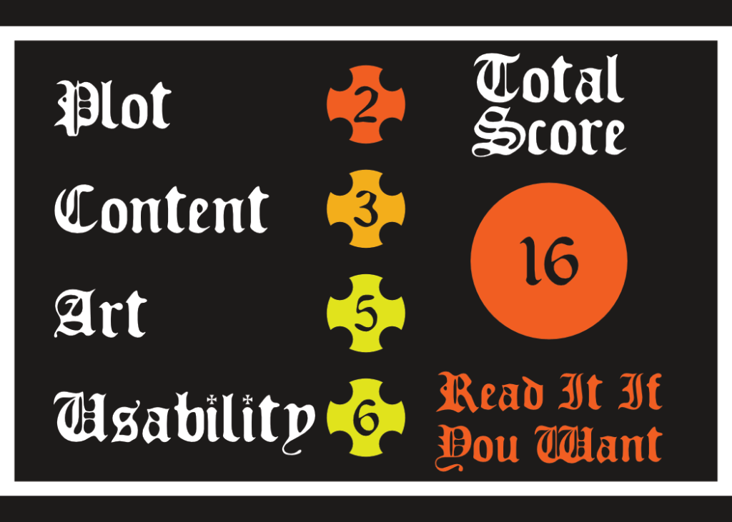 You don’t have to pay for art to get a good score, and you don’t have to make it yourself either, giving the OSR Special of public domain art, a few quick drawings, and a dungeon from Dungeon Scrawl is just fine. The art in adventure does its job. It doesn’t blow me away, but I’m not disappointed. Each monster is depicted, the dungeon is all laid out, it’s not bad by any means. That’s why it got the average score. No shame in that.