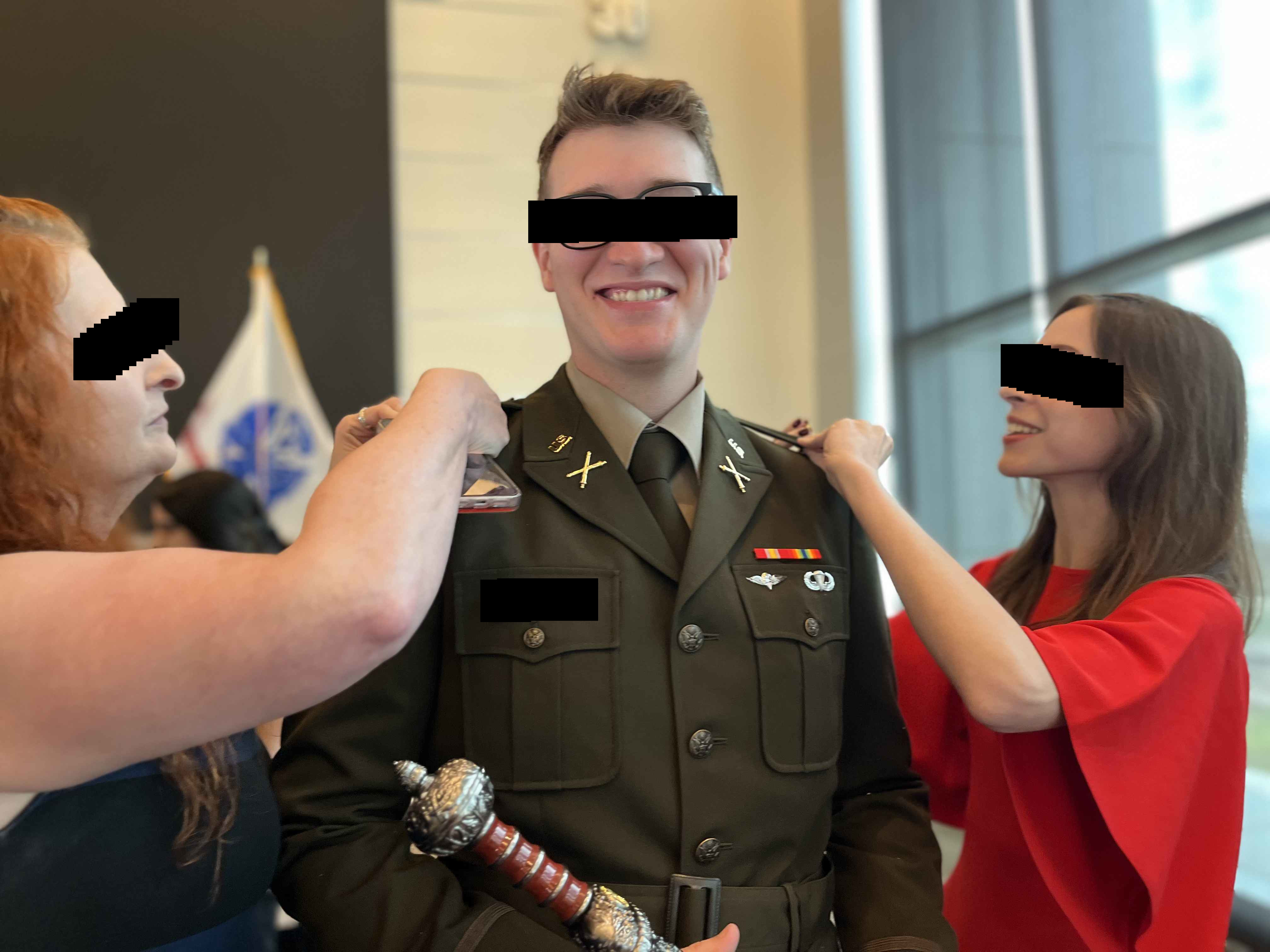 Image is of my mom and my wife pinning on my gold bars during my commissioning ceremony