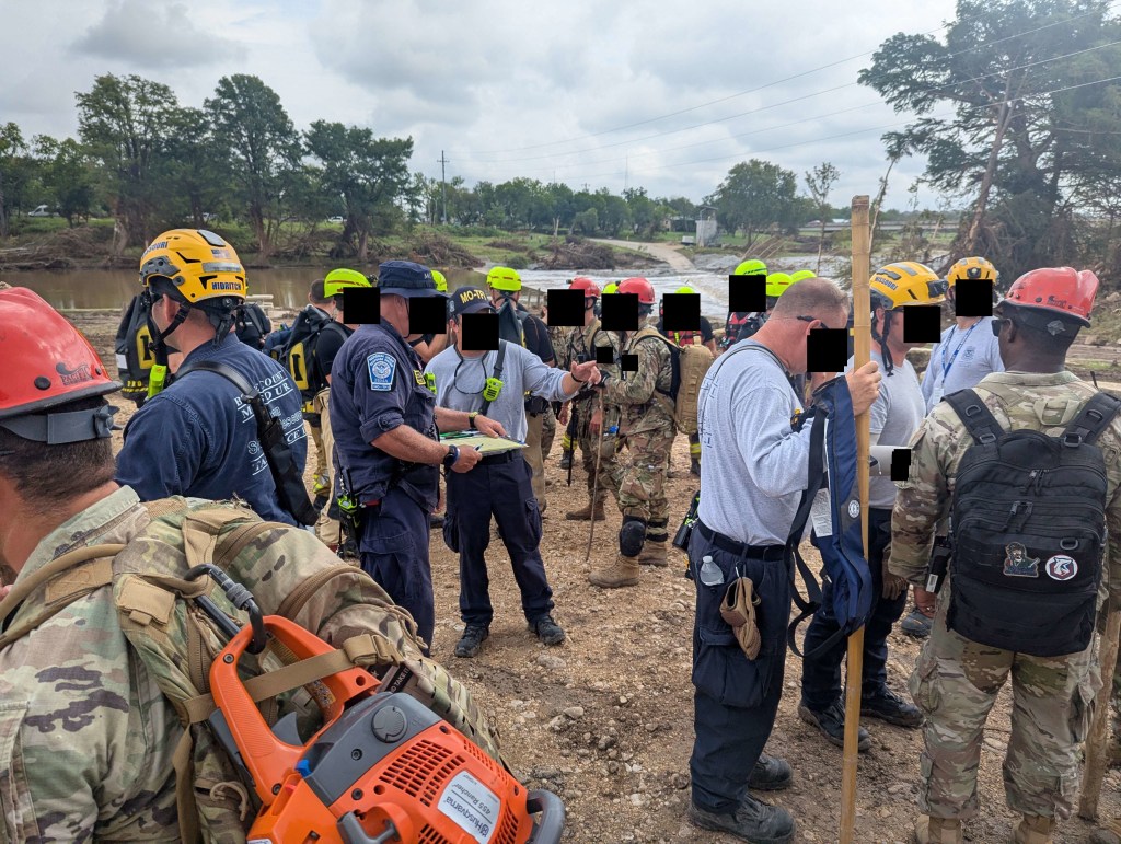 Image of my unit, more national guard personnel, Czech Firefighters, and civilian agents in Kerrville prepping before another Search and Extraction excursion